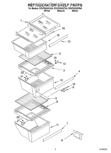 Parts for Whirlpool ED5FHGXKB04: 03 - Refrigerator Shelf Parts
