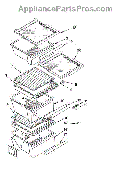 Causes of a bad shelf can be normal wear and tear over time from repeated removal and washing. Accidental drops or impact damage may also affect structural integrity. This OEM Whirlpool part can also be used on Maytag, KitchenAid, Jenn-Air, Amana, Magic Chef, Admiral, Norge, Roper, and Kenmore/Sears brand appliances.