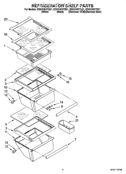 Parts for Whirlpool ED5VHEXTS01: 03 - Refrigerator Shelf Parts