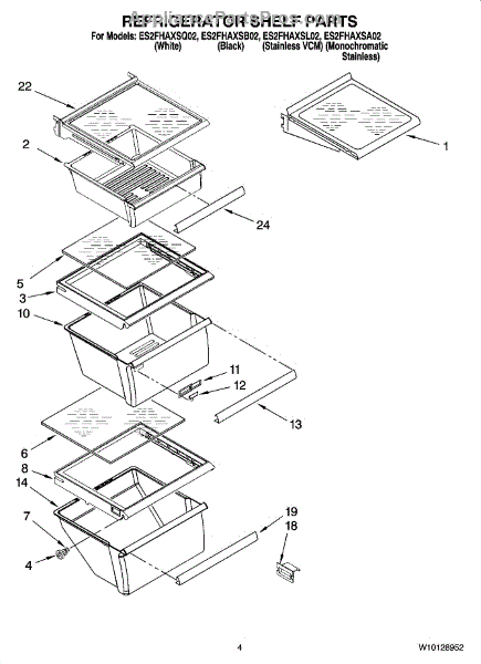 Parts for Whirlpool ES2FHAXSQ02: 03 - Refrigerator Shelf Parts