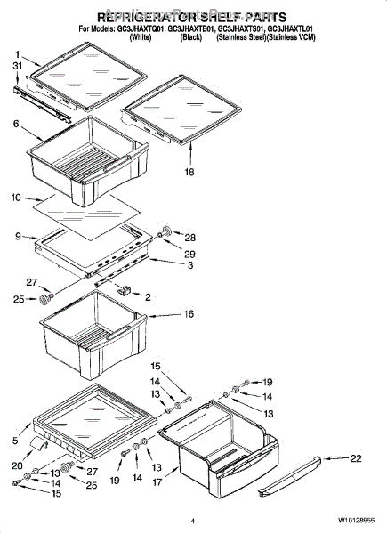 Parts for Whirlpool GC3JHAXTB01: 03 - Refrigerator Shelf Parts