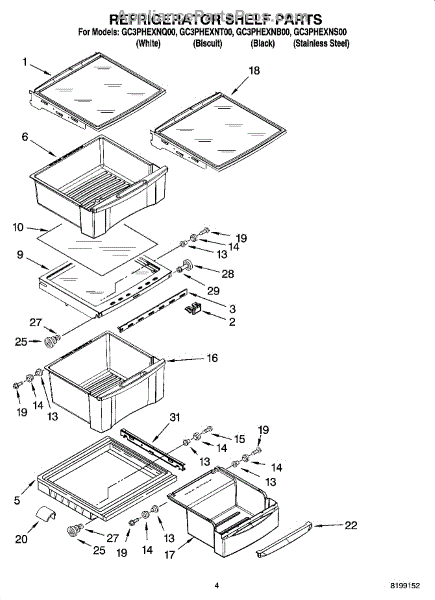 Parts for Whirlpool GC3PHEXNB00: 03 - Refrigerator Shelf Parts