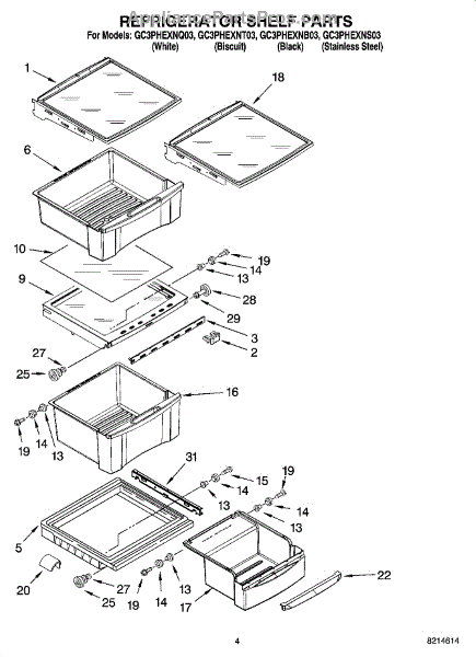 Parts for Whirlpool GC3PHEXNS03: 03 - Refrigerator Shelf Parts