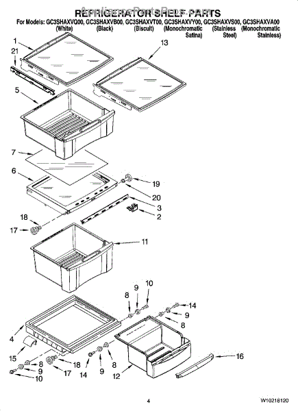 Parts for Whirlpool GC3SHAXVA00: 03 - Refrigerator Shelf Parts