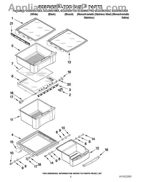 Parts for Whirlpool GC3SHAXVS03: 03 - Refrigerator Shelf Parts
