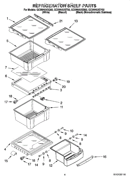 Parts for Whirlpool GC5NHAXSQ02: 03 - Refrigerator Shelf Parts