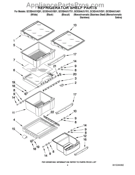 Parts for Whirlpool GC5SHAXVY01: 03 - Refrigerator Shelf Parts
