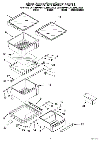 Parts for Whirlpool GC5SHEXNQ03: 03 - Refrigerator Shelf Parts