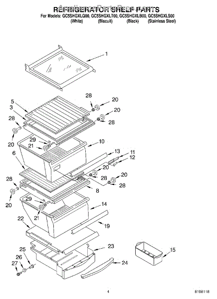 Parts for Whirlpool GC5SHGXLS00: 03 - Refrigerator Shelf Parts