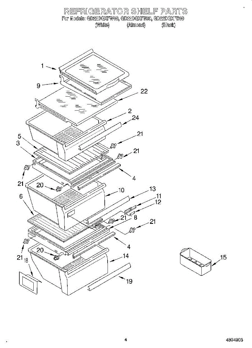 Parts for Whirlpool GD22DQXFN00: 03 - Refrigerator Shelf Parts