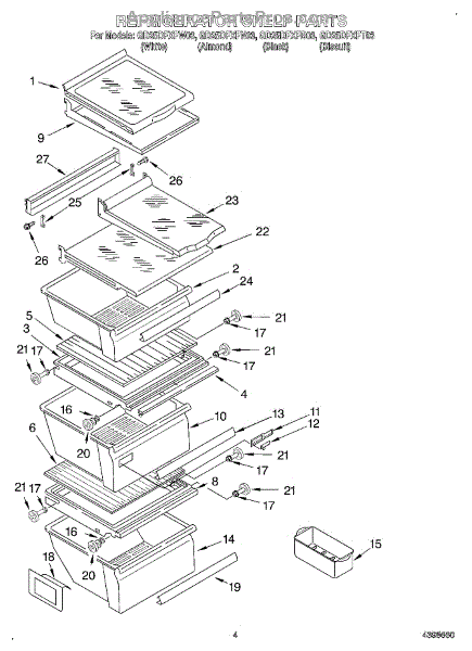 Parts for Whirlpool GD25DFXFN03: 03 - Refrigerator Shelf Parts