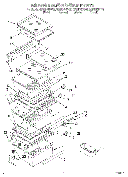 Parts for Whirlpool GD25DFXFW02: 03 - Refrigerator Shelf Parts