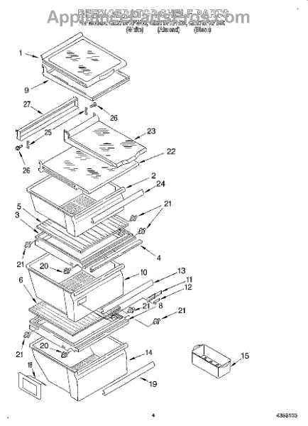 Parts for Whirlpool GD27DFXFB00: 03 - Refrigerator Shelf Parts