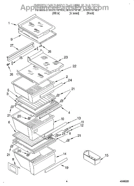 Parts for Whirlpool GD27DFXFW01: 03 - Refrigerator Shelf Parts