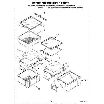 Parts for Whirlpool GD5DHAXVQ00: 03 - Refrigerator Shelf Parts