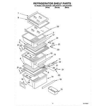 Parts for Whirlpool GD5LHGXKB01: 03 - Refrigerator Shelf Parts