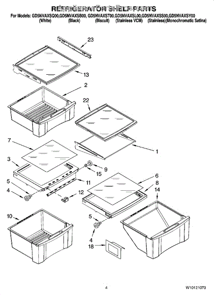 Parts for Whirlpool GD5NVAXSQ00: 03 - Refrigerator Shelf Parts
