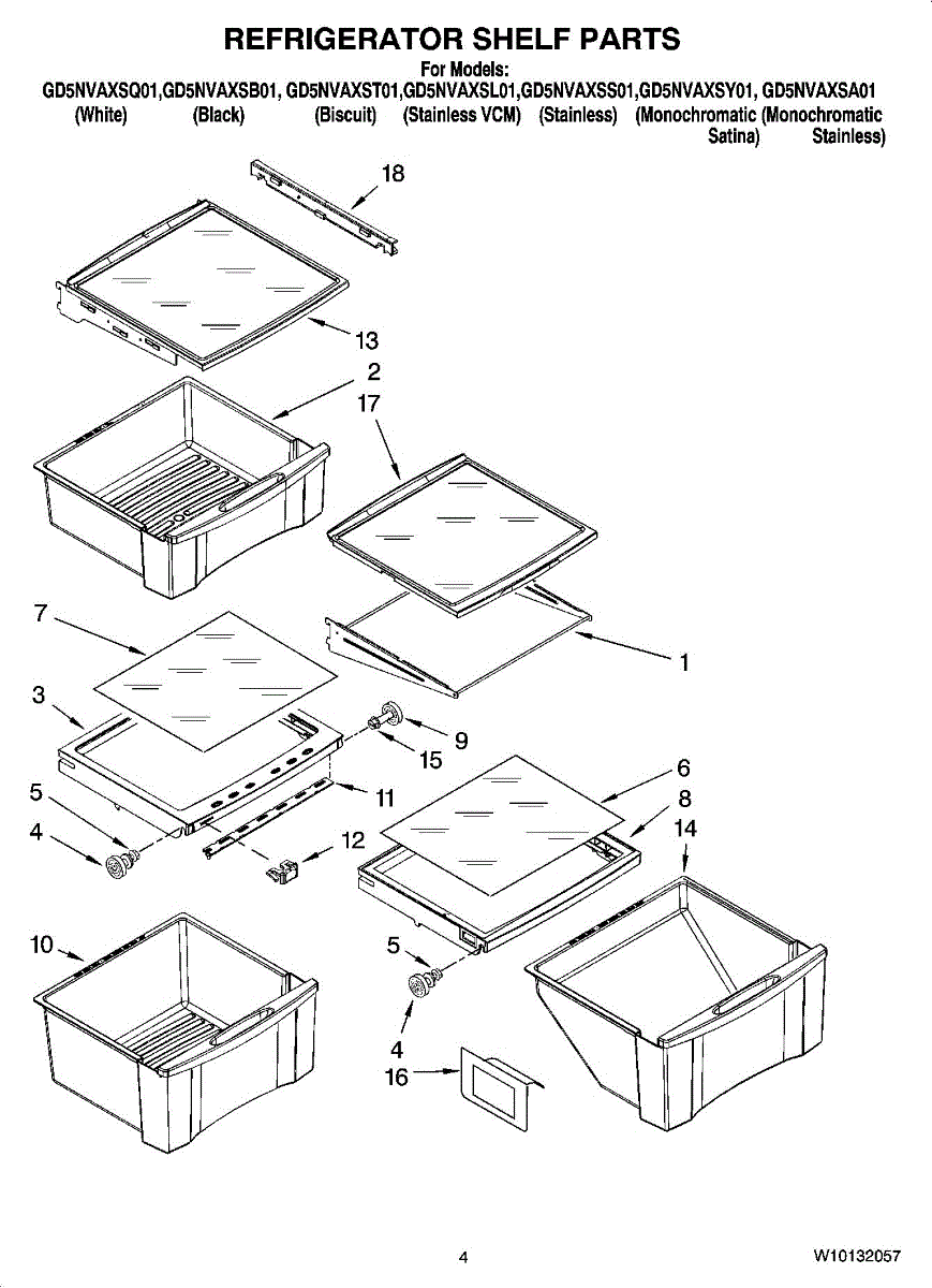 Parts for Whirlpool GD5NVAXSQ01: 03 - Refrigerator Shelf Parts