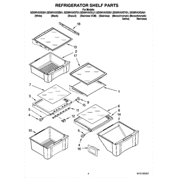Parts for Whirlpool GD5NVAXSS01: 03 - Refrigerator Shelf Parts