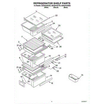 Parts for Whirlpool GD5SHAXKQ02: 03 - Refrigerator Shelf Parts