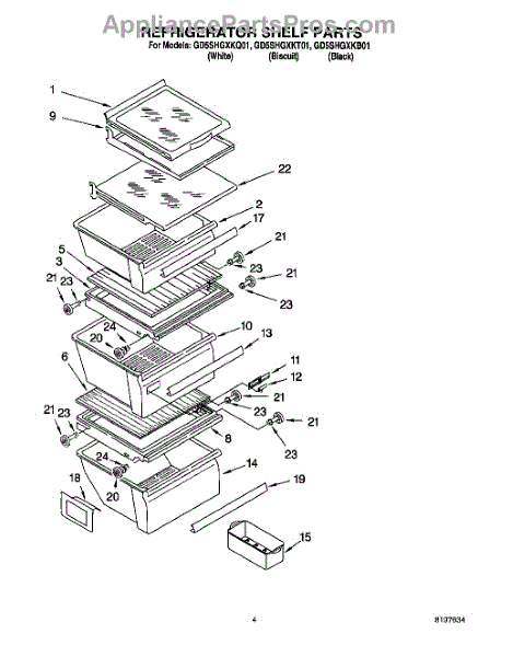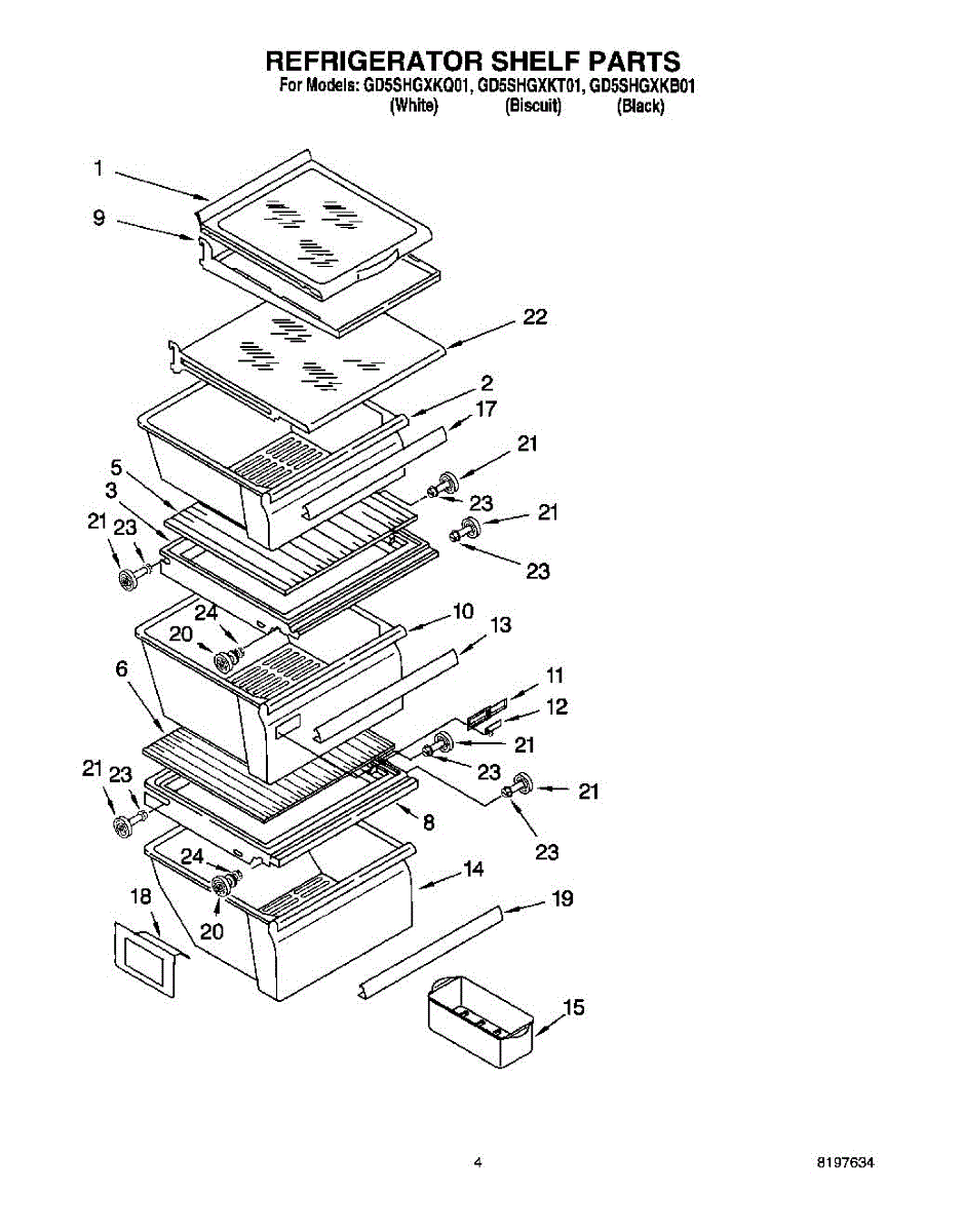 Parts for Whirlpool GD5SHGXKQ01: 03 - Refrigerator Shelf Parts