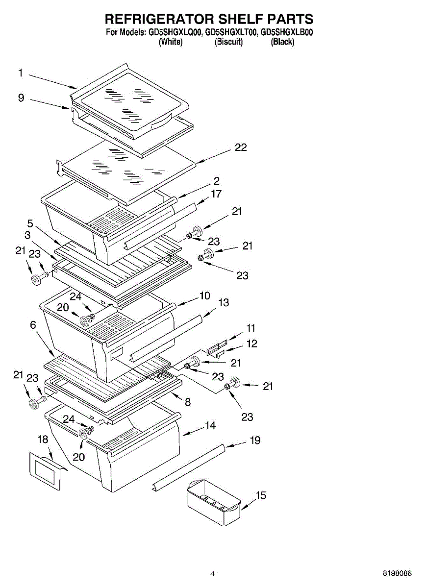 Parts for Whirlpool GD5SHGXLB00: 03 - Refrigerator Shelf Parts