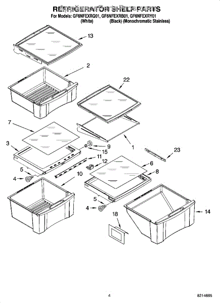 Parts for Whirlpool GF6NFEXRQ01: 03 - Refrigerator Shelf Parts