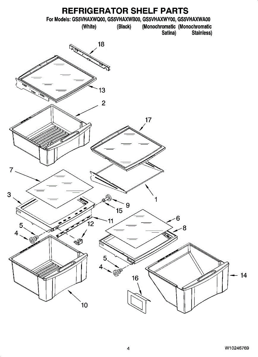 Parts for Whirlpool GS5VHAXWA00: 03 - Refrigerator Shelf Parts