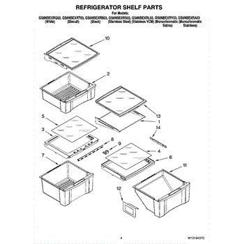 Parts for Whirlpool GS6NBEXRA03: 03 - Refrigerator Shelf Parts