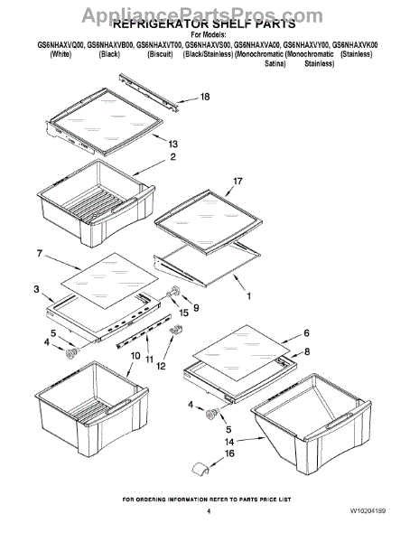 Parts for Whirlpool GS6NHAXVQ00: 03 - Refrigerator Shelf Parts