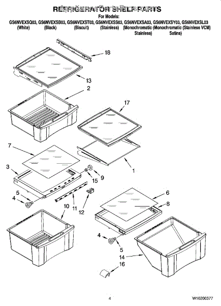 Parts for Whirlpool GS6NVEXSQ03: 03 - Refrigerator Shelf Parts