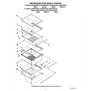 Parts for Whirlpool GSF26C4EXW02: 03 - Refrigerator Shelf Parts