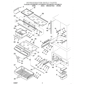 This egg carrier is a molded tray that holds and secures eggs inside the refrigerator so they stay organized and protected from rolling or breaking. It restores safe, tidy egg storage and fits the factory shelf location. What it does