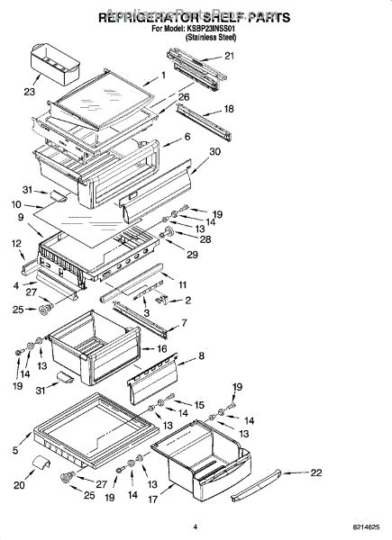 Parts for Kitchenaid KSBP23INSS01: 03 - Refrigerator Shelf Parts