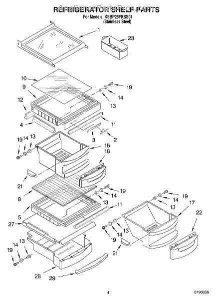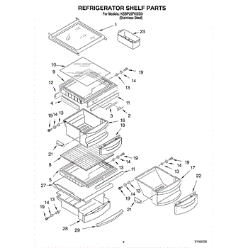 Parts for Kitchenaid KSBP25FKSS01: 03 - Refrigerator Shelf Parts