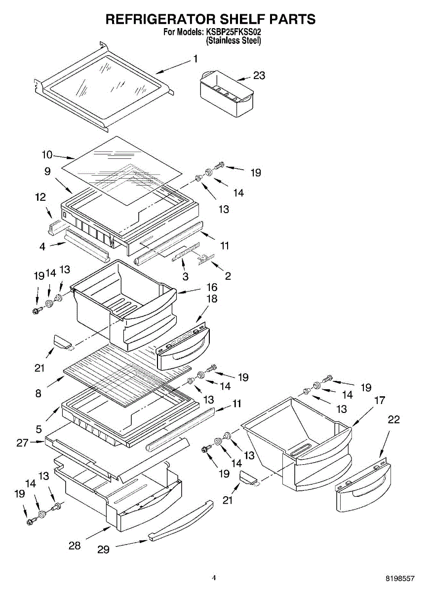 Parts for Kitchenaid KSBP25FKSS02: 03 - Refrigerator Shelf Parts