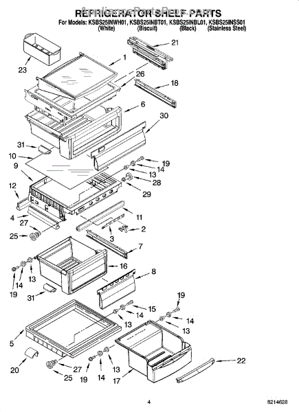 Parts for Kitchenaid KSBS25INBL01: 03 - Refrigerator Shelf Parts