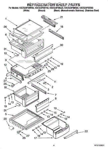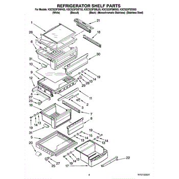 Parts for Kitchenaid KSCS23FSWH03: 03 - Refrigerator Shelf Parts