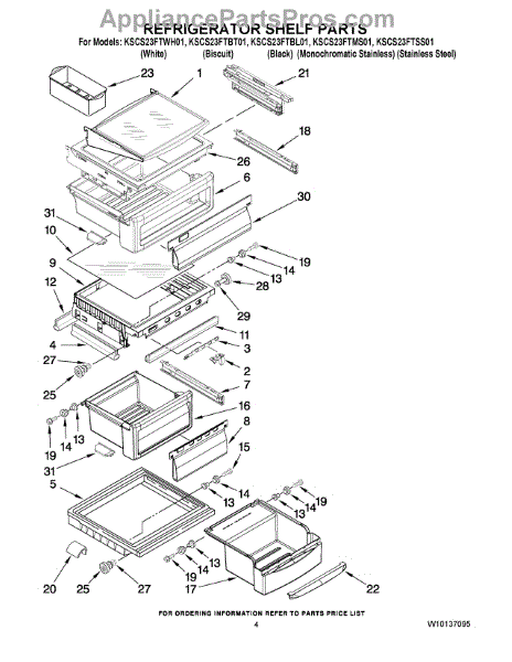Parts for Kitchenaid KSCS23FTBT01: 03 - Refrigerator Shelf Parts