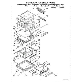 The Refrigerator Shelf is an OEM part for Whirlpool refrigerators. It provides storage space within the refrigerator, helping to organize and support various food items. The shelf is designed to fit securely and withstand the weight of stored items, ensuring optimal use of the refrigerator's interior space.