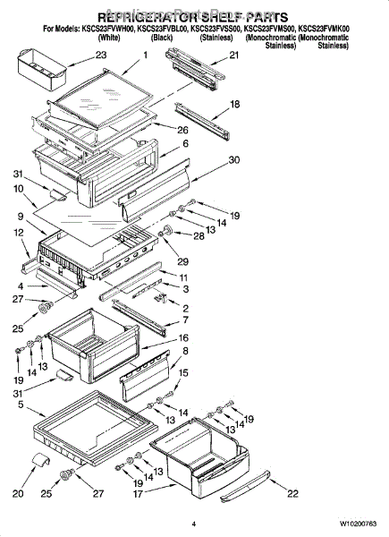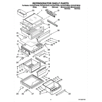 Parts for Kitchenaid KSCS23FVSS00: 03 - Refrigerator Shelf Parts