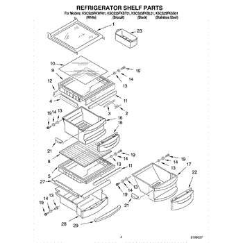Parts for Kitchenaid KSCS25FKSS01: 03 - Refrigerator Shelf Parts