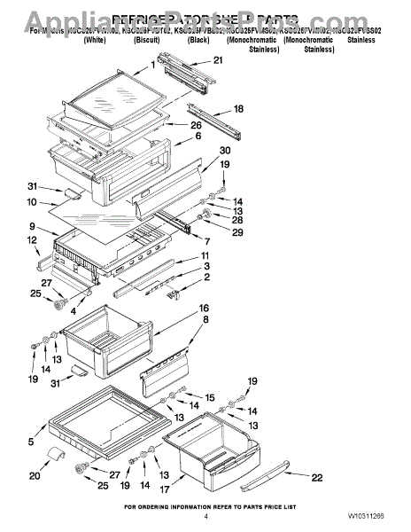 Parts for Kitchenaid KSCS25FVSS02: 03 - Refrigerator Shelf Parts
