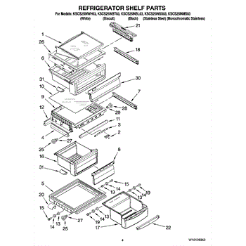 Parts for Kitchenaid KSCS25INBL03: 03 - Refrigerator Shelf Parts