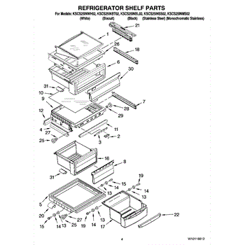 The Refrigerator Shelf is an OEM part for Whirlpool refrigerators. It provides storage space within the refrigerator, helping to organize and support various food items. The shelf is designed to fit securely and withstand the weight of stored items, ensuring optimal use of the refrigerator's interior space.
