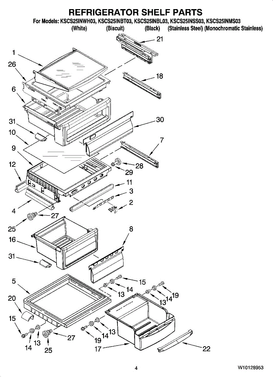 Parts for Kitchenaid KSCS25INWH03: 03 - Refrigerator Shelf Parts
