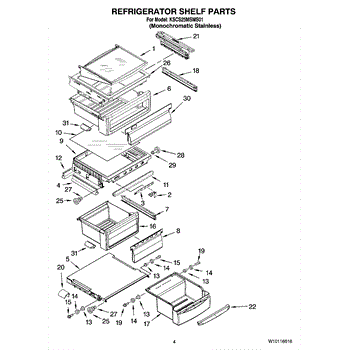 The Refrigerator Shelf is an OEM part for Whirlpool refrigerators. It provides storage space within the refrigerator, helping to organize and support various food items. The shelf is designed to fit securely and withstand the weight of stored items, ensuring optimal use of the refrigerator's interior space.