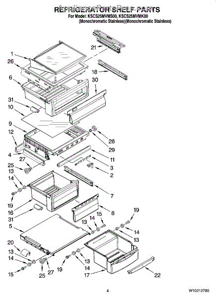 Parts for Kitchenaid KSCS25MVMS00: 03 - Refrigerator Shelf Parts