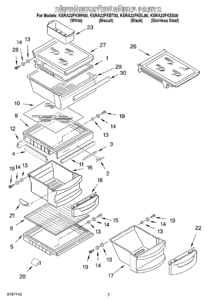 Parts for Kitchenaid KSRA22FKBT00: 05 - Refrigerator Shelf Parts