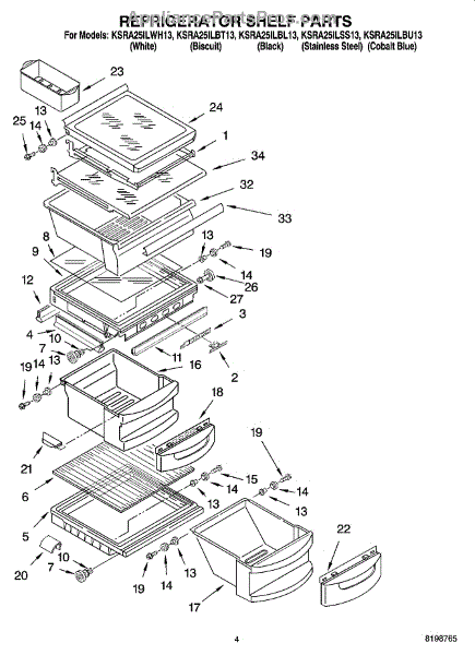 Parts for Kitchenaid KSRA25ILBU13: 03 - Refrigerator Shelf Parts